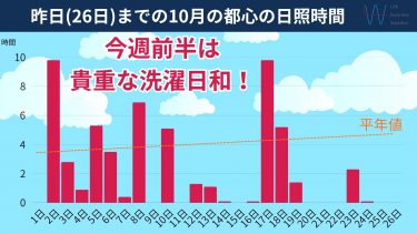 東海から九州は、あさって25日(金)以降は晴れ間の出る日が多いですが、28日(月)は低気圧が接近し、昭和の日の29日(火)にかけて広く雨が降るかもしれません。太平洋側ほどまとまった雨になる可能性もありますので、最新の予報でご確認ください。