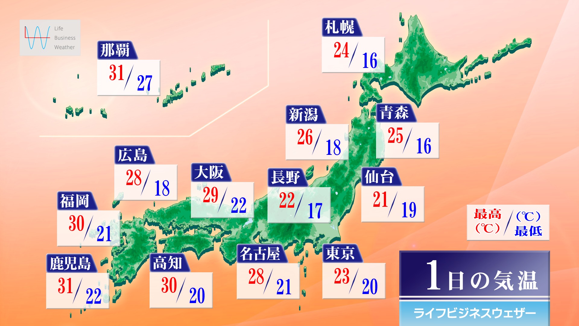 日中の最高気温は、北海道や東北、関東で23度ほどと、東北南部や関東では今日30日(火)よりも大幅に低く、長袖のシャツや軽く羽織る物が活躍しそうです。東海から沖縄は30度前後と昼間は半袖シャツで過ごせますが、寒暖差が大きくなりますので、朝晩は羽織る物で上手く調整しましょう。