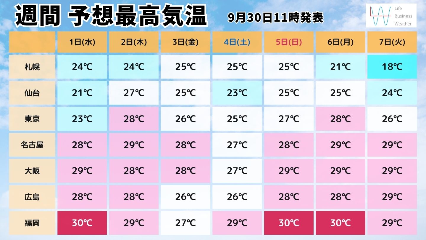 明日10月1日は『衣替えの日』とされています。秋冬服へシフトチェンジをするタイミングですが、今年2025年は残暑が厳しく、昨日9月29日には、気象庁から『高温に関する早期天候情報』が発表され、東・西日本や沖縄・奄美では10月5日頃から平年より気温がかなり高くなる可能性があります。
