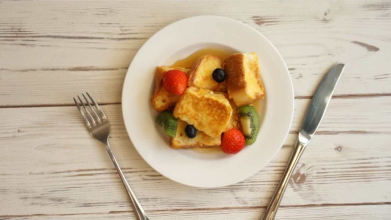 また、牛乳の代わりに豆乳で作るフレンチトーストもおすすめです。ボウルに豆乳200mlと卵1個、さとう大さじ1杯を混ぜ、食パンを浸して焼くだけで、脂質やカロリーが抑えられ、まろやかな甘さのフレンチトーストになります。朝食やおやつに、フルーツなどをトッピングして頂くのもおすすめです!