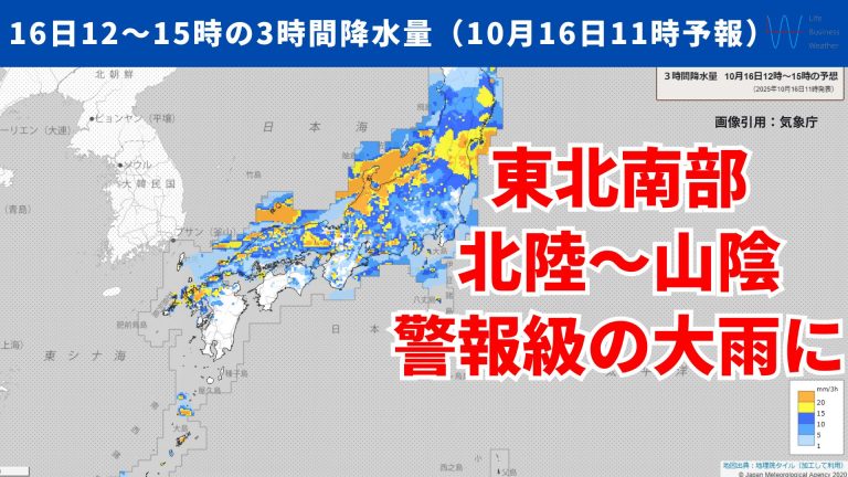 低気圧が通過し東北南部と北陸~九州北部で『激しい雨』に