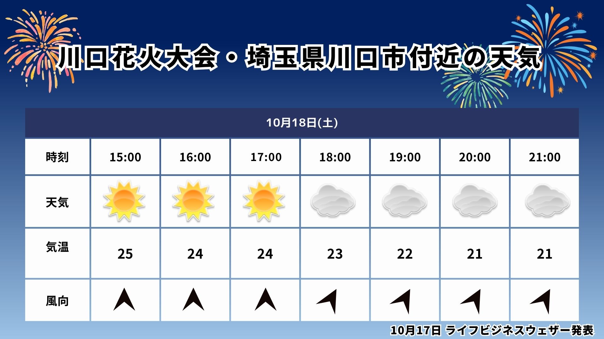 明日18日(土)は第5回・川口花火大会が開催されます。当日の天気や持ち物を近隣に住む気象予報士が解説していきます!
