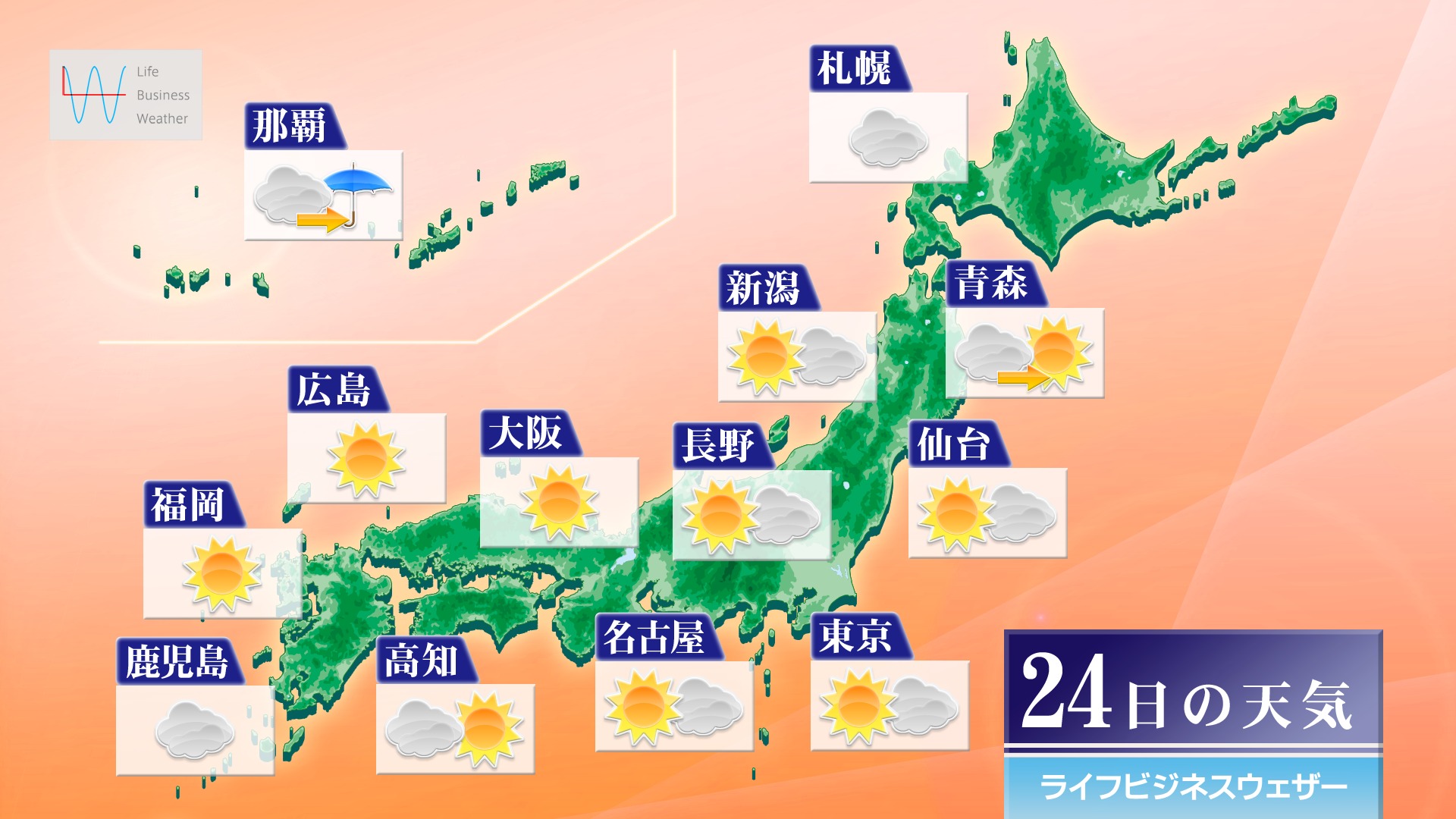 明日24日(金)は、北日本は平年を下回る肌寒さとなりますが、西日本では過ごしやすい陽気となるでしょう。