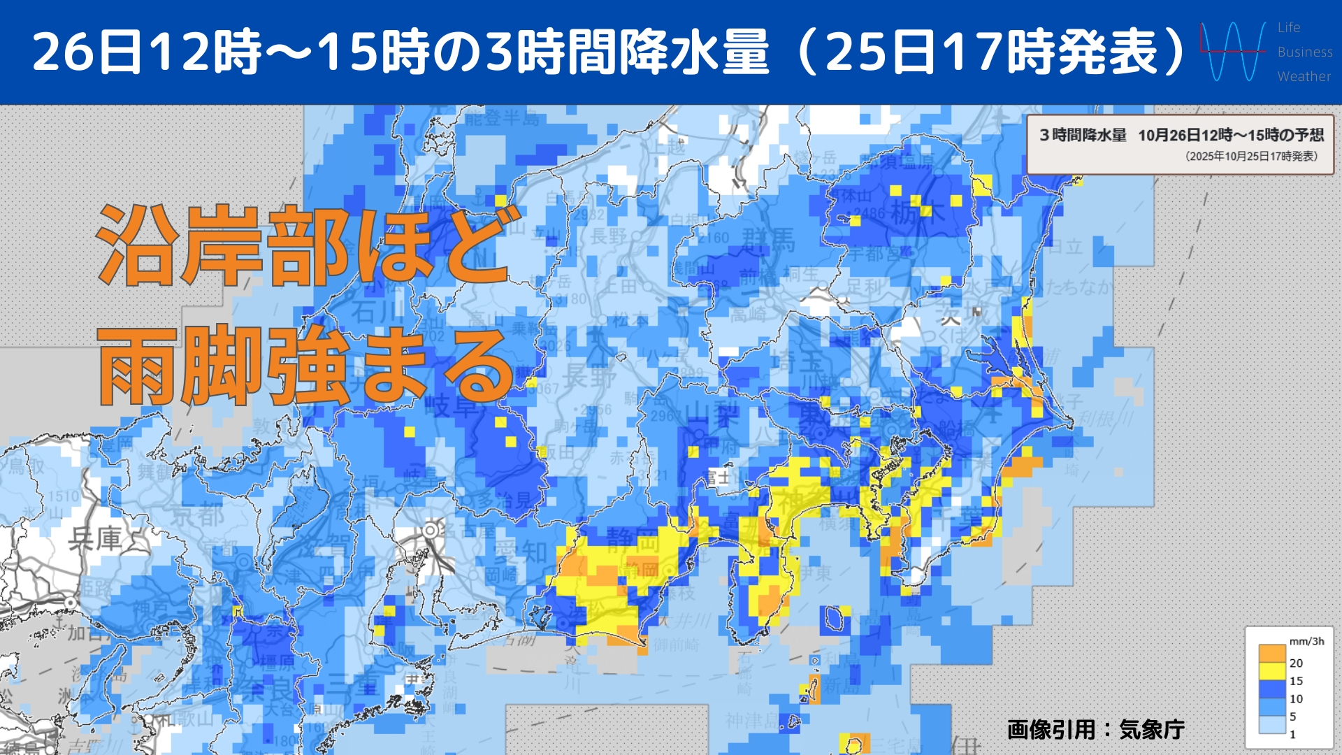 特に、静岡県や神奈川県では、まとまった雨になりそうですから、土砂災害や低い土地の浸水、河川の増水にご注意下さい。